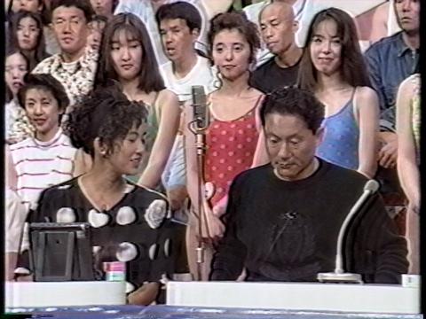 紹介前の司会陣の様子。前に座ってるのはビートたけしと薮本雅子。